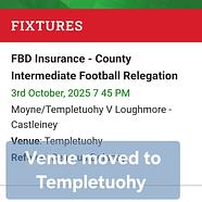 Please note change of venue to Templetuohy